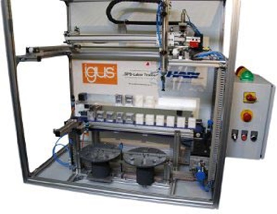 Due to a very limited budget, almost all the components were designed and produced by the students themselves, such as the room portal, conveyor belt and rotary disk subassemblies. Various plastic plain bearings and two energy supply chains from the manufacturer “igus®” were used as a result. At this point we would like to give our thanks once again for the great support from “igus®”!