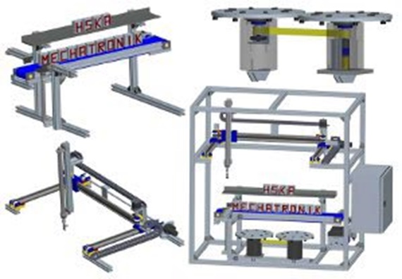 For presentation purposes, letters are milled into the objects. The writing by the “HSKA Mechatronics” course can therefore be displayed on the delivery plate and the conveyor belt.