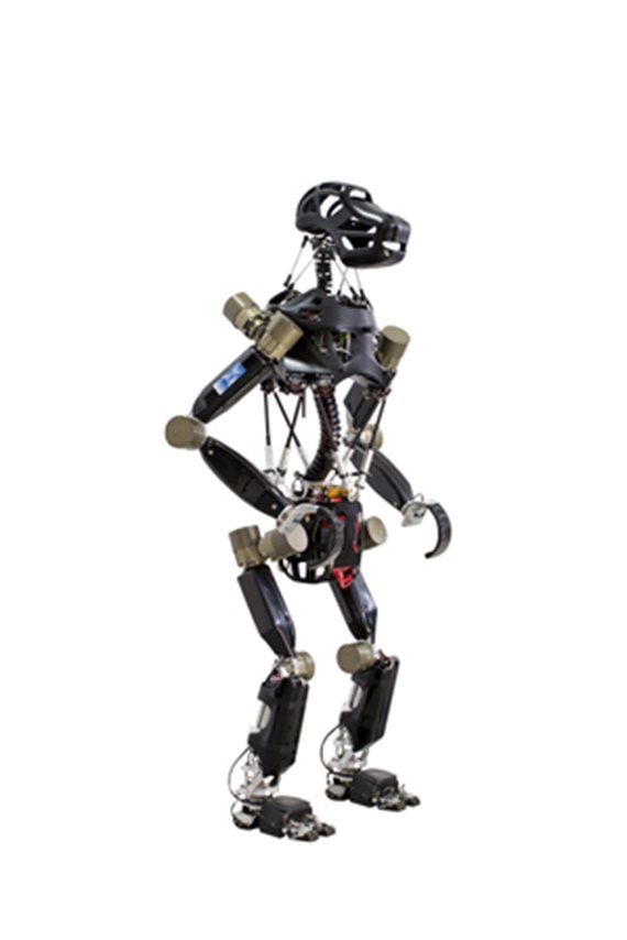 This robot moves very smooth. A torso supports the movement via an active relative movement between pelvis and torso in six possible movements. The control electronic sytem is integrated in the shoulder area of the robot. To increase the electromagnetic compatibility and to minimize disturbances, the power electronics and the batteries were separatley integrated from the control electronics in the pelvis. An energy chain of the triflex® R type from igus® was used to guide and protect a number of cables between pelvis and torso. Apart from that it also looks like a real spine.