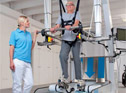 The therapy robot helps patients to walk again after an operation. The robot does not simply limit this to level paths, but also simulates complex paths.