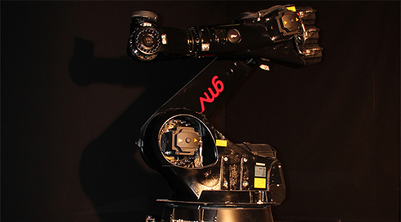 This high-frequency welding apparatus moves in a working area of 8 x 2,5 metres and rotates about 360 degrees.
